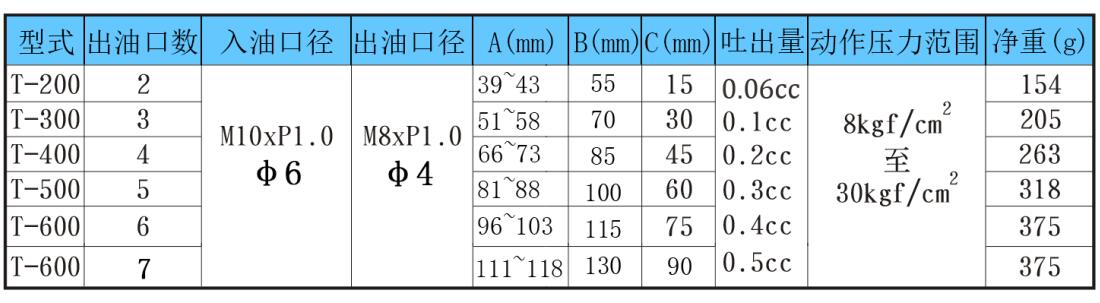 性能特点: 1、从油泵中输送出的润滑油使分配器中的伞形阀往上推动; 2、当伞形阀把出油孔封闭后,压力油迫使活塞克服簧力下降,使下腔开始储油...