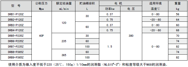 D R B-P系列电动润滑泵适用于润滑频率高,配管长度大,润滑点密集的单、双线干稀油集中润滑系统中,作为供给润滑脂的输送装置。还可配备移动小车、胶管、油枪和电缆组成移动式电动润滑泵装置,适用于润滑频率低,润滑点少,给油量大,不便于采用集中润滑的单机设备,进行移动供脂润滑。