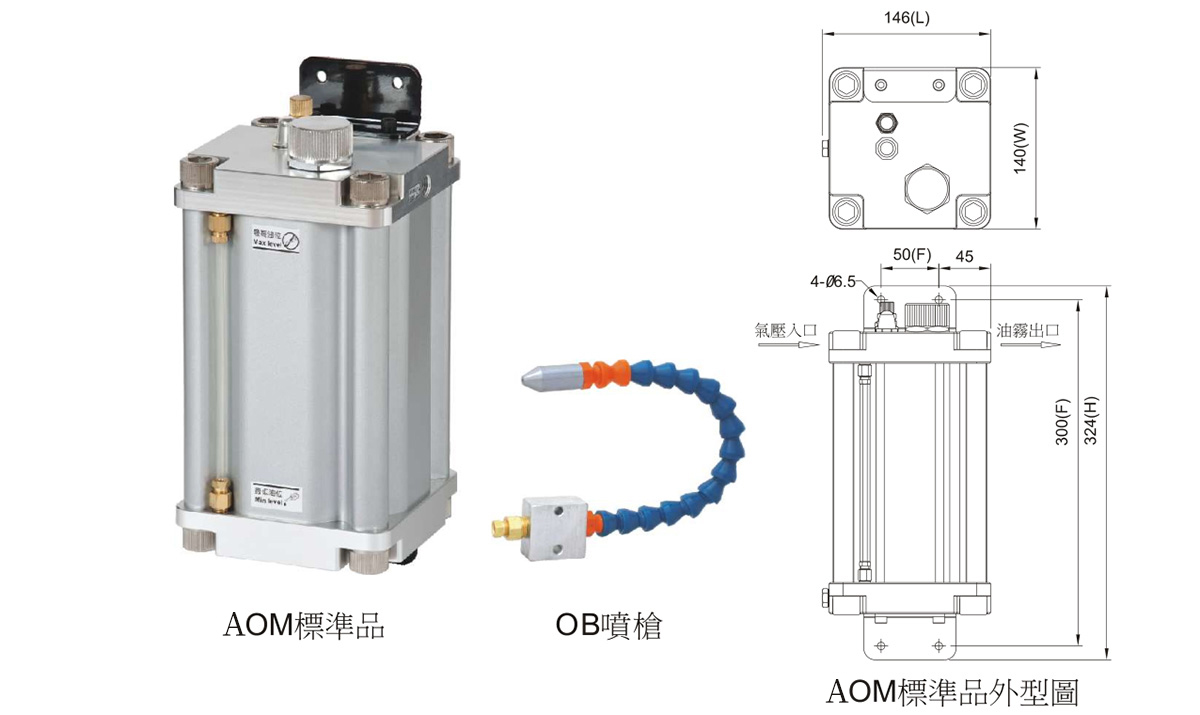 性能特点: 1.AOM型油雾式气动注油机荣获台湾新型专利第M376679号 2.COM型油雾式气动注油机适用于润滑高速切削、大面积润滑、特殊加工润滑冷却,油雾混...